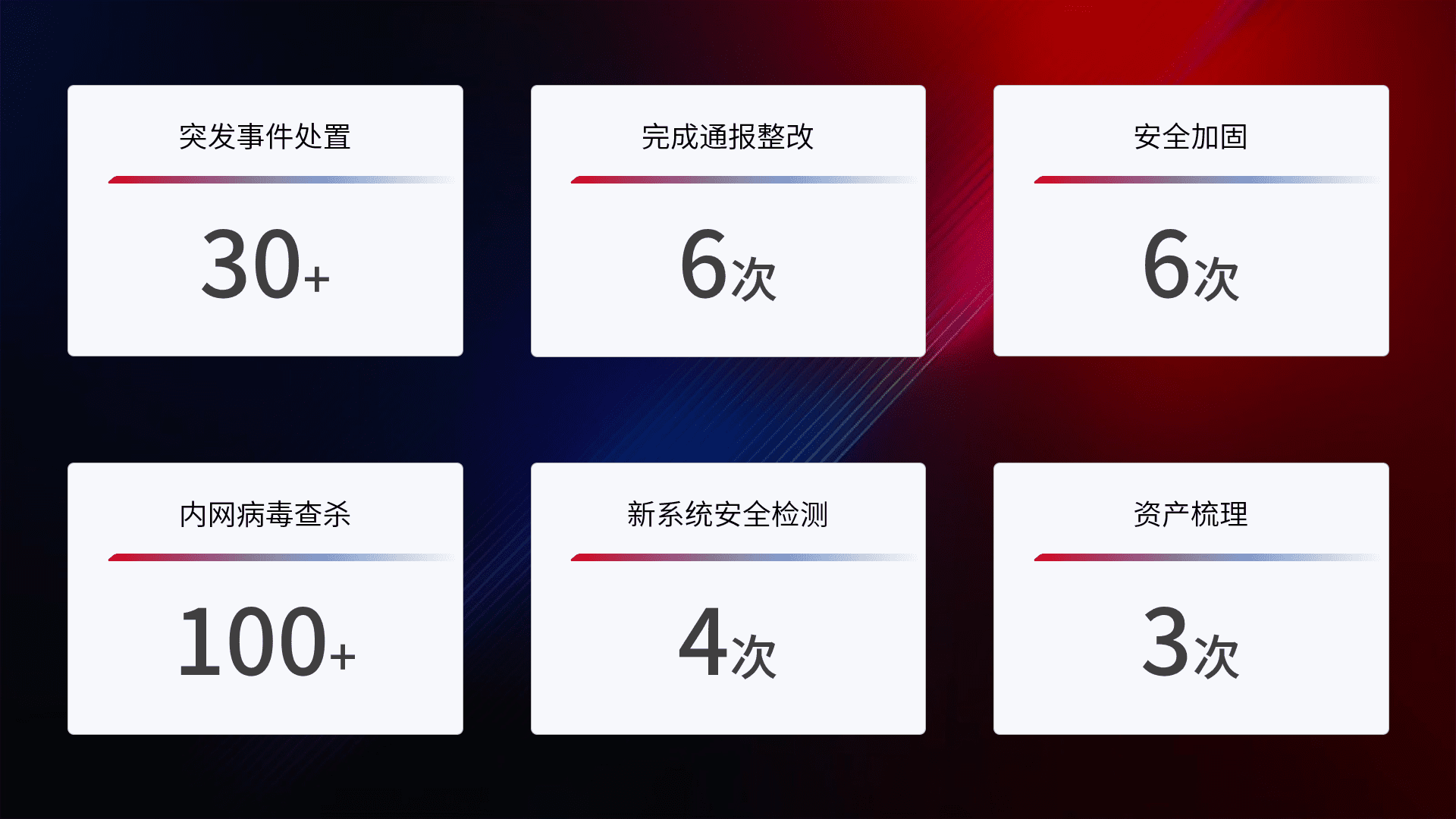 网络安全加固与风险管理:通过技术加固手段,,如加强区域隔离,,缩减攻击内网横向移动的范围;优化现有网络安全管理制度,,,,降低网络威胁暴露面,,,,减少被黑客攻击的可能性。。。。