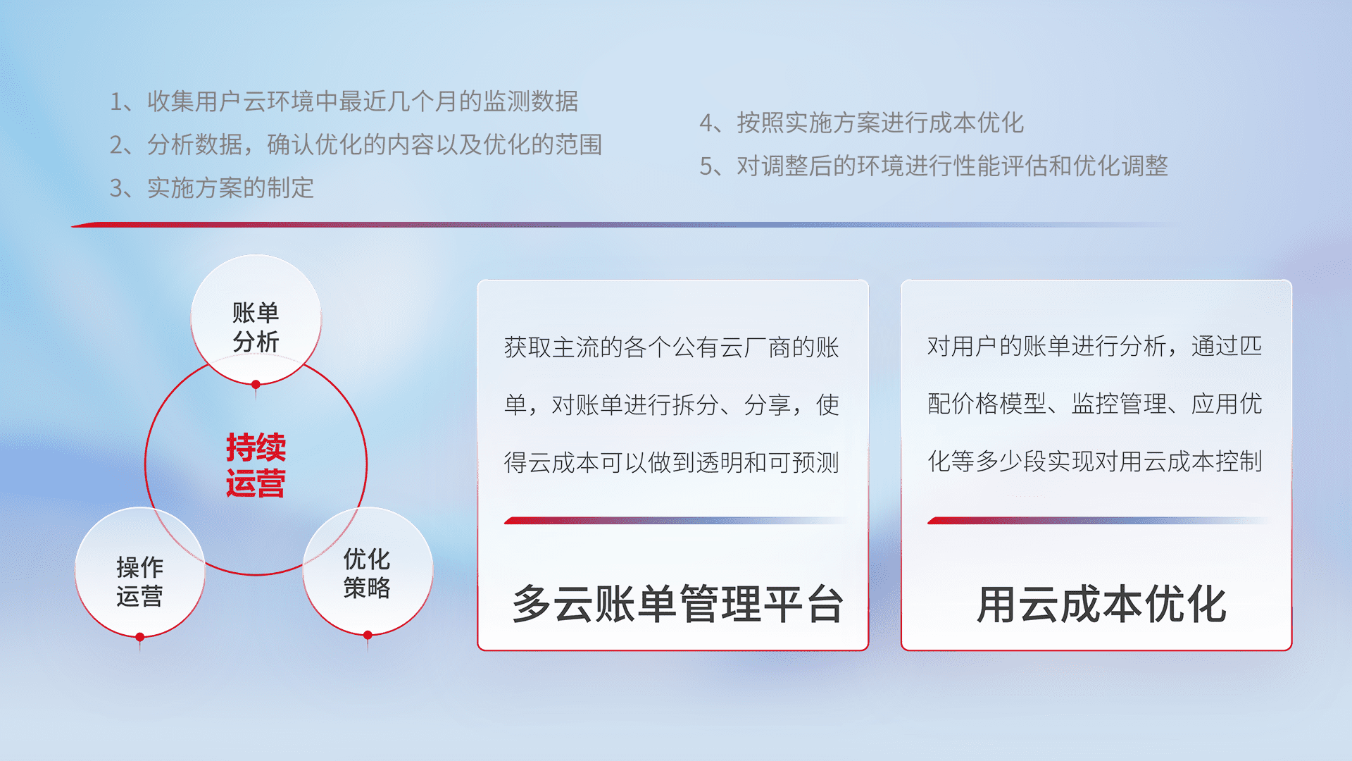 监控业务系统资源开销,,,对资源的消耗精确计量,,,实现费用的透明化管理,,,不断提升资源使用率,,,,调整资源购买方式,,,降低资源费用成本,,,,用云成本可预测、、、、用云费用可优化,,云资源配额有据可依。。